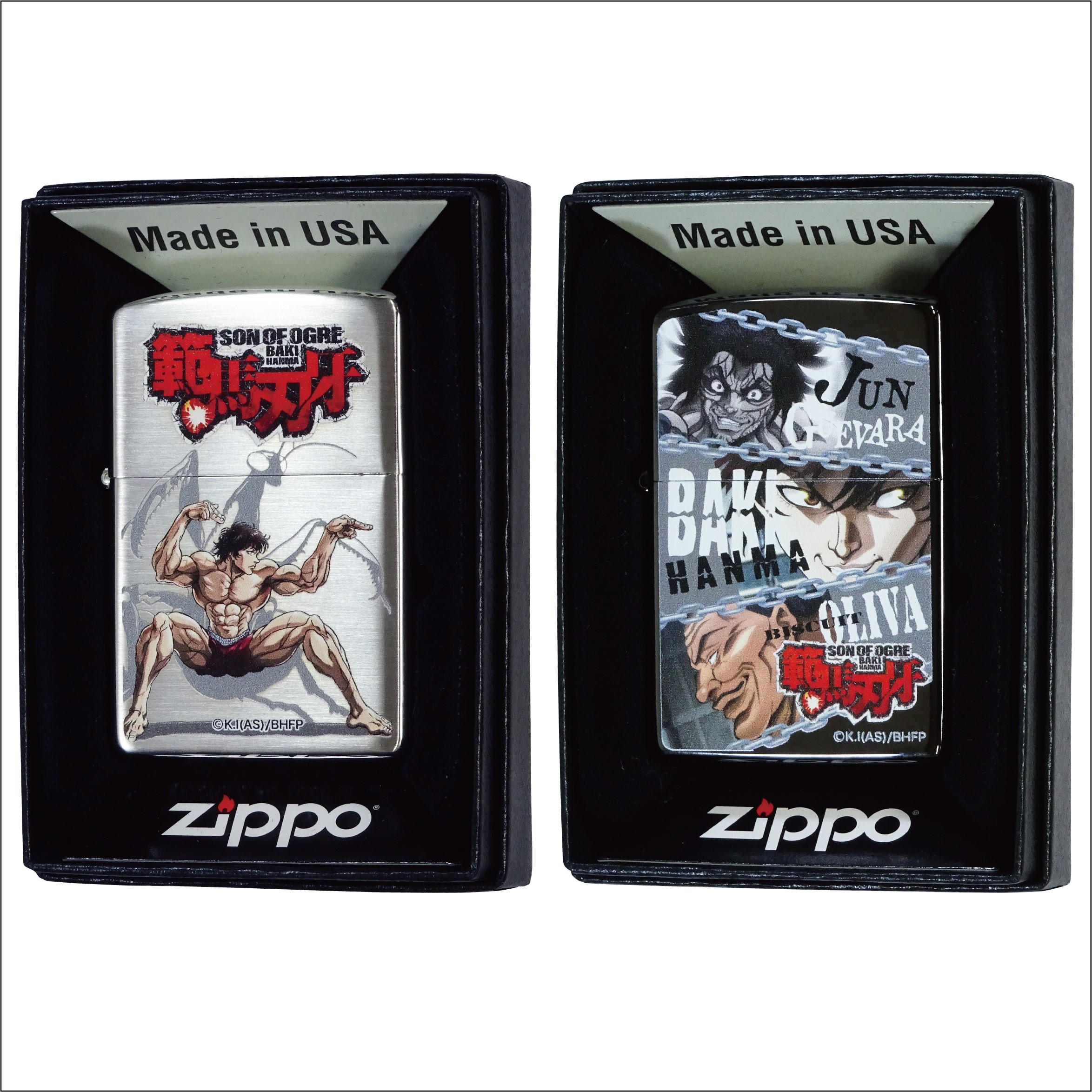 Netflixにて配信中のアニメ『範馬刃牙』より、新ZIPPOが登場! シルバーサテンベース・100kgのカマキリとのイメージバトルデザインと、ブラックミラーベース・獄中の三つ巴の戦いをデザインした2種類が新発売‼︎